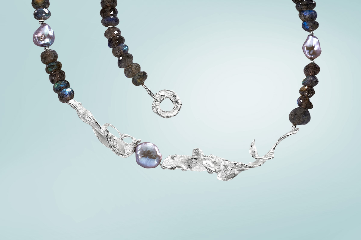 Flora Mare Blasentang Collier mit Labradorit und Perlen BC 15 aus 925/- Silber